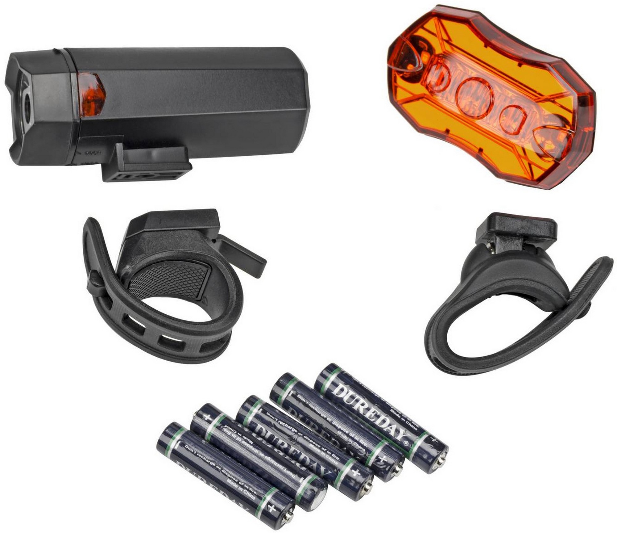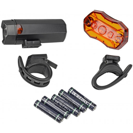 - Apima: priekinis žibintas, galinis žibintas, 5 AAA baterijos, vairo tvirtinimo laikiklis, sėdynės stulpelio tvirtinimo laikiklis