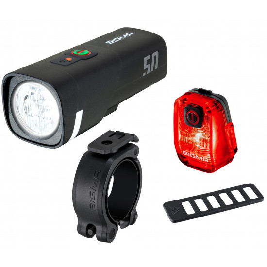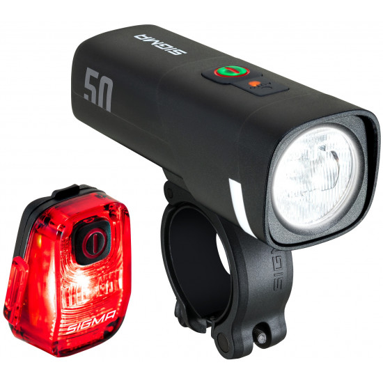 Whether for everyday use or a weekend trip, youll always be well-equipped with the AURA 50/HIRO 10 lighting set. These StVZO-approved lights can be installed in no time at all, without any tools. The AURA 50, with 50 lux, illuminates the road with a range of up to 60 meters and, thanks to its integrated brightness sensor, automatically adjusts its brightness to the ambient conditions - for the perfect balance between visibility and battery life. The HIRO 10 rear light makes you visible from up to 500 meters away, thus increasing your safety on the road. Both lights feature a USB-C charging port.