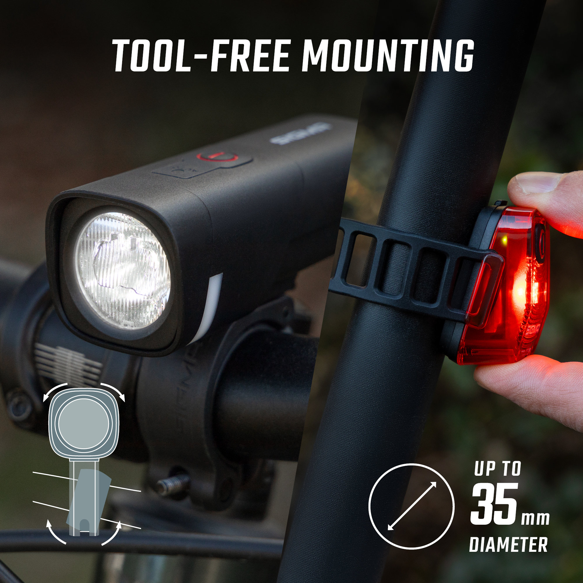 - EASY ASSEMBLY Thanks to the 360 degrees adjustable silicone mount, the AURA 40 can be attached to the handlebars in seconds without tools. It can be aligned horizontally and vertically as required. So that you can stow the light away even more quickly and space-savingly, it is equipped with a quick release – so you can remove it while the holder remains firmly attached to the bike.