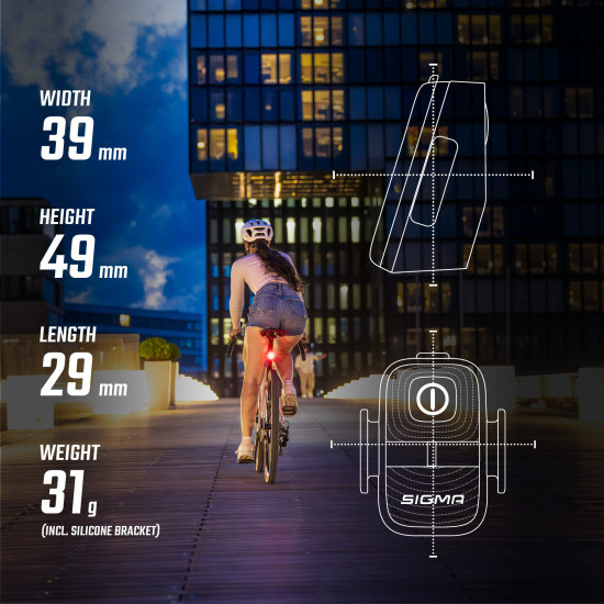 - VISIBLE FROM ALL SIDES The NYTE 10 ensures that you are also clearly visible from the side. The rear light shines at a 240 degree angle and makes you even more visible. An important safety feature, especially in city traffic.