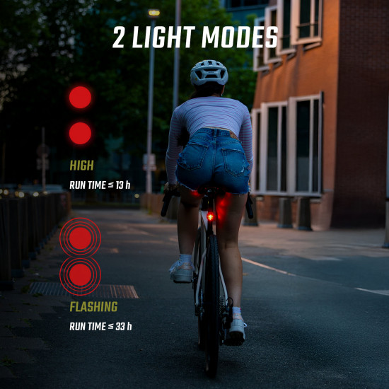 - RECHARGEABLE The NYTE 10 has an integrated rechargeable battery. You can fully recharge the rear light in 3 hours via USB-C. This saves money and protects the environment.