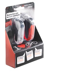 The Reelight CITY is a battery-free bike light that is sensible on price - and big on convenience, safety and reliability. This breakthrough technology is our next line of battery free bike lights powered by eddy currents generated when the wheel rim passes the light.Features*No batteries required*Steady lights*Quick-click mounting*Mounted on the front fork/rear stay*Powered by the wheel rim passing the light*No friction*Easy to bringSpecifications:Runtime: 10,000 hours run timehttp://www.youtube.com/watch?feature=player_embedded&v=XRkJmoni0CQ