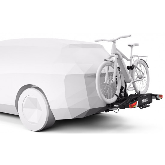 Tvirtinamas ant kablio (grąžulo)Pilnai sulankstomas iki kompaktiško dydžio patogesniam montavimui, transportavimui ir laikymuiDidelis krovumas suteikia galimybę vežti elektrinius, kalnų ir kitus sunkius dviračiusLengvas dviračių tvirtinimas su nuimamais dviračių rėmo laikikliais, turinčiais spynas su Thule AcuTight sukimo momento ribotuvu, kuris spragtelės, kai bus pasiektas optimalus priveržimasDidelis atstumas tarp ratų laikiklių, dėl ko galima vežti didelius dviračius su ilga ratų bazeReguliuojamos sagtys su įtempimo terkšlėmisYpač ilgi dirželiai tiks priveržti ir FATBIKE dviračių ratus (maks. padangos plotis 4.70 coliai)Lengvai pasiekiama bagažinė tiesiog spustelėkite koja atlenkimo pedalą ir dviračių laikiklis atsilenks kartu su dviračiaisStabilus uždėjimo mechanizmas leidžia lengvai uždėti ir reguliuoti dviračio laikiklį prieš užveržiant rankenėleIntegruotos rankenos padeda lengvai transportuoti dviračių laikiklįIš anksto surinktas, todėl uždėjimui nereikia jokių įrankiųDviračiai prirakinami prie dviračių laikiklio, o šis - prie automobilio (integruotos spynos komplekte)SVARBU: Prašome pasitikrinti suderinamumą https://www.thule.com/en-gb/gb/buyers-guideMaksimalus dviračių kiekis: 2Maksimali apkrova: 60 kgMaksimalus dviračio svoris: 30 kgDydis: 123 x 63 x 68 cmDydis sulanksčius: 31 x 63 x 68 cmSvoris: 17.9 kgTinka dviračio rėmo vamzdžio diametrams: 22-80 mmAtstumas tarp dviračių: 22 cmKomplekte lentelė valstybinam numeriuiTinka karboniniam rėmui (Reikalingas atskirai įsigyjamas adapteris: Thule Carbon Frame Protector - 69-984)Netinka automobiliams, turintiems išorinį atsarginį ratąGalinės lemposElektros jungtis: 13 kontaktųSuderinama su Thule One-Key vieno rakto sistemaTinka vežti elektrinius dviračiusCity Crash - produktas testuotas pagal saugumo standartą, atitinkantį ISO keliamus reikalavimus. TÜV GS kokybės patvirtinimas (GS Geprufte Sicherheit)Plus X Award 2017/2018 - Thule EasyFold XTAksesuarai Thule EasyFold XT 2 (į komplektą neįeina, yra galimybė užsakyti):Thule EasyFold XT Carrying Bag 2Thule EasyFold XT Loading RampThule Carbon Frame ProtectorThule XXL Fatbike Wheel StrapsThule Bike Frame AdapterThule Wheel AdapterThule Adapter 9906Thule Number PlateThule Wheel Strap LocksThule One-Key System 4-pack