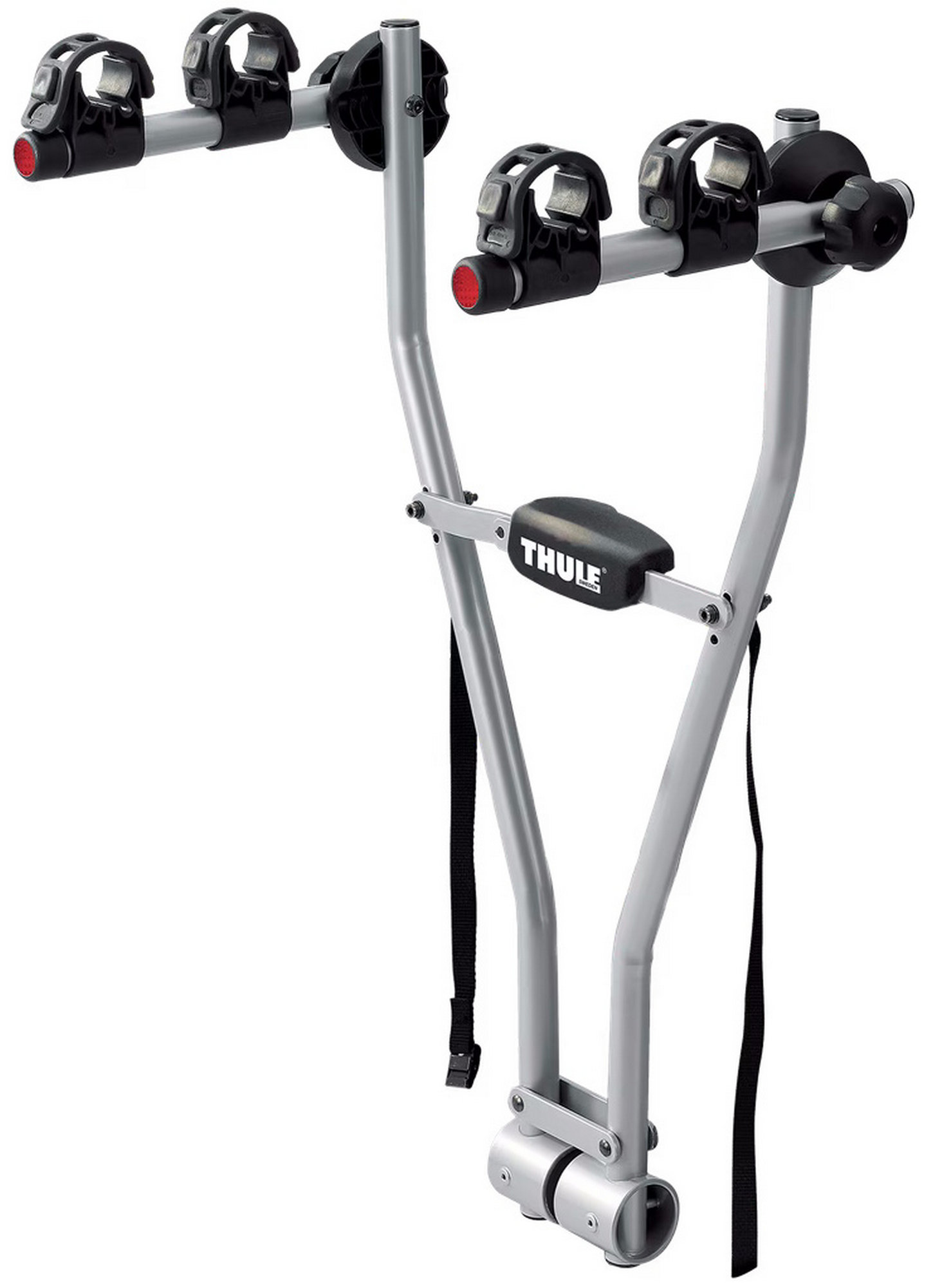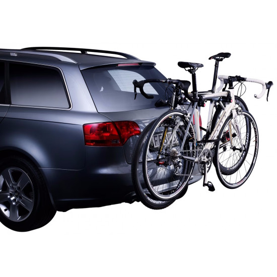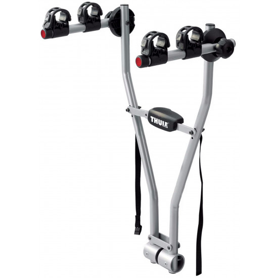The basic, quick and easy to use bike carrier (for 2 bikes) Soft, protective frame holders keep the bikes in place. Preassembled with strap, and reflectors included for extra safety. Bikes are at convenient height from the ground. Folds flat for easy storage and handling. Use Thule Bike Frame Adapter 982 for Fitting of bikes with non-standard frames (e.g. ladies bikes, BMXs, downhill bikes). Load capacity Bikes: 2Load capacity (kg): 30 kgFits wheel dimensions: AllMax bike weight: 15 kgDistance between bikes: -Length (cm): -Width (cm): 43 cmWeight (kg): 4.3 kgFits frame dimensions: All sizes down to 20 junior bikes.Detachable frame holders: noTiltable with bikes: noOne Key System compatible: noFits cars with exterior spare tyre: noFits most bikes with disc brakes: yesRear lights: Adapter Required: Thule Light Board 976Powerplug: -TÜV Approved: -Fulfils City Crash norm: yesMiscellaneous: Straps for fixation of bikes included. Lock carrier to car with padlock.