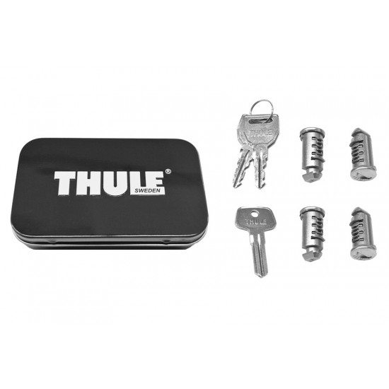 Thule vieno rakto One-Key spynų šerdžių sistema: 4 identiškos spynos ir visoms joms tinkantys 4 raktaiSpynos komplekteTinka visiems su Thule One-Key suderinamiems dviračių laikikliams ir bagažinėmis