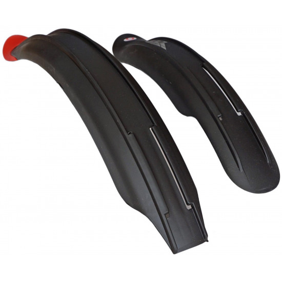 Simpla Kido skydelių komplektas vaikiškiems 20" dviračiamsPagaminti iš tvirto plastikoTinka 20" ratamsSkydelių galuose - šviesą atspindintis elementasPurvasargis ant galinio skydelioSu tvirtinimo priedais - varžteliai ir laikikliai-plokštelėsPlotis: 65 mmSvoris: 210 gSpalva: Juoda su raudonu purvasargiu