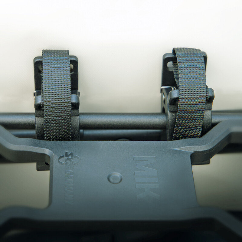 Safe on the road with a bag and pack! The stylish INFINITY URBAN SIDEBAG luggage carrier bag offers plenty of space for equipment, laptop or shopping with its approx. 20 liters. It is attached to the luggage rack strut with two sturdy hooks and can also be secured with the lower swivel hook. This also prevents it from swinging sideways while riding. Thanks to the large adjustment range of the hooks, the pannier can be attached not only to the INFINITY UNIVERSAL, but also to almost any luggage carrier.