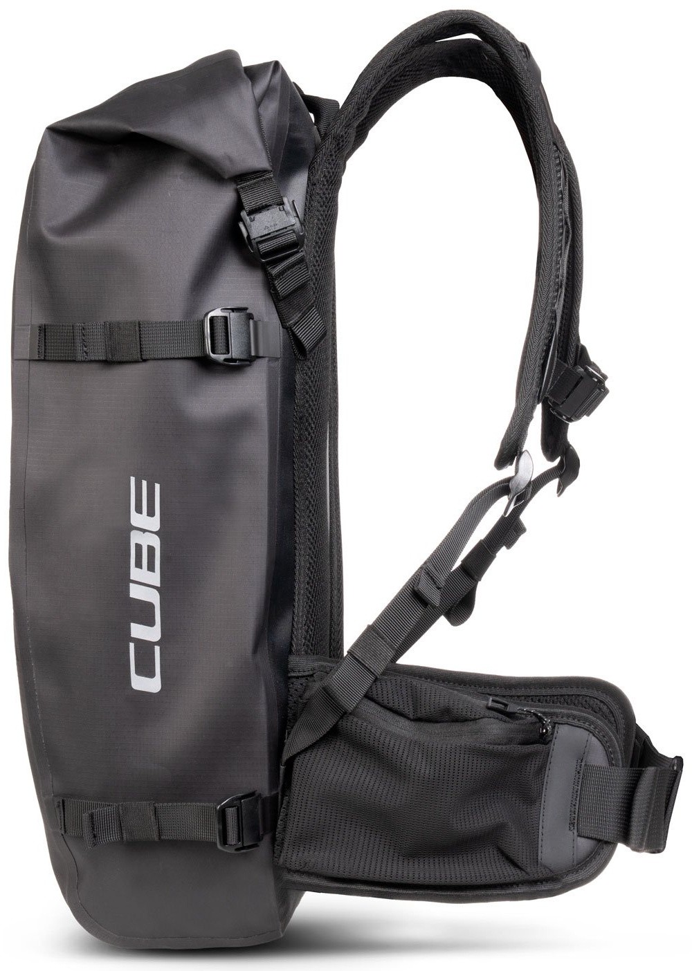 The CUBE MTB 14 Pro Backpack is the perfect companion for long tours and demanding adventures. Its welded, waterproof construction made from abrasion-resistant, PVC-free material reliably protects your gear from rain and dirt. The MOLLE system allows for flexible expansion, adapting the backpack to any mission. A dedicated compartment for the SAS-TEC LB-L back protector provides extra protection when it counts. Inside the main compartment, an intelligently integrated tool section offers quick access to essential gear, while practical hip belt pockets and reflective details enhance both comfort and safety on the go. Rugged, smart, and built for peak performance.