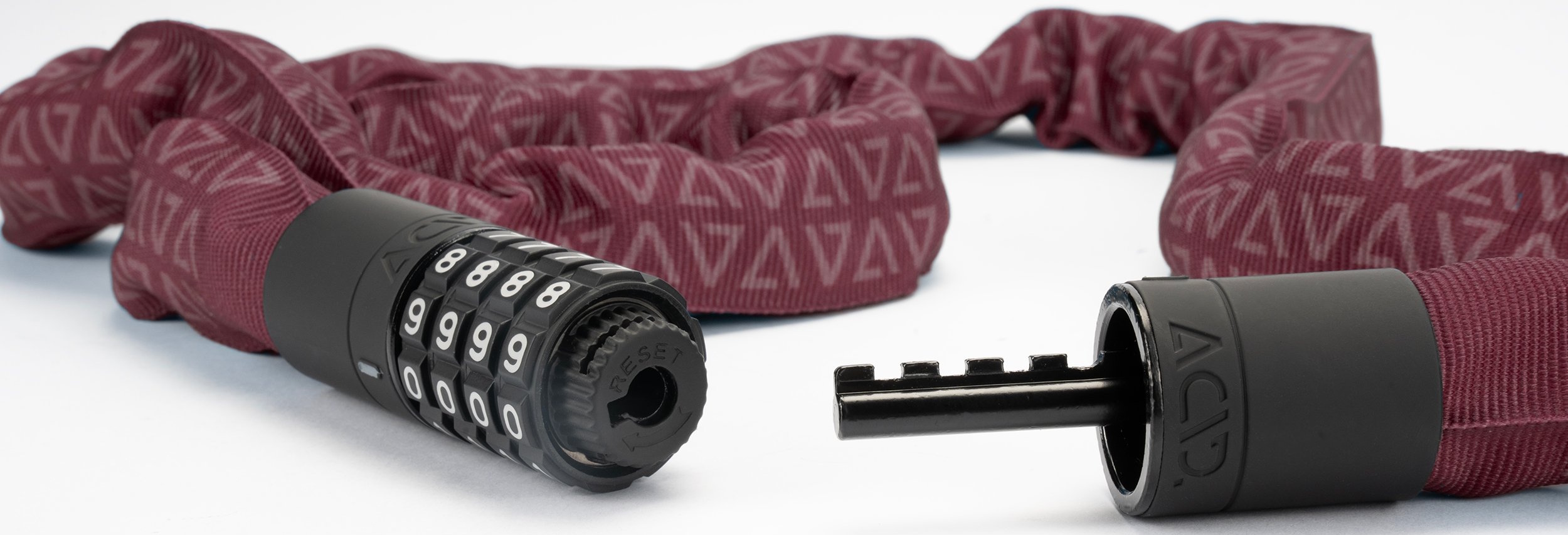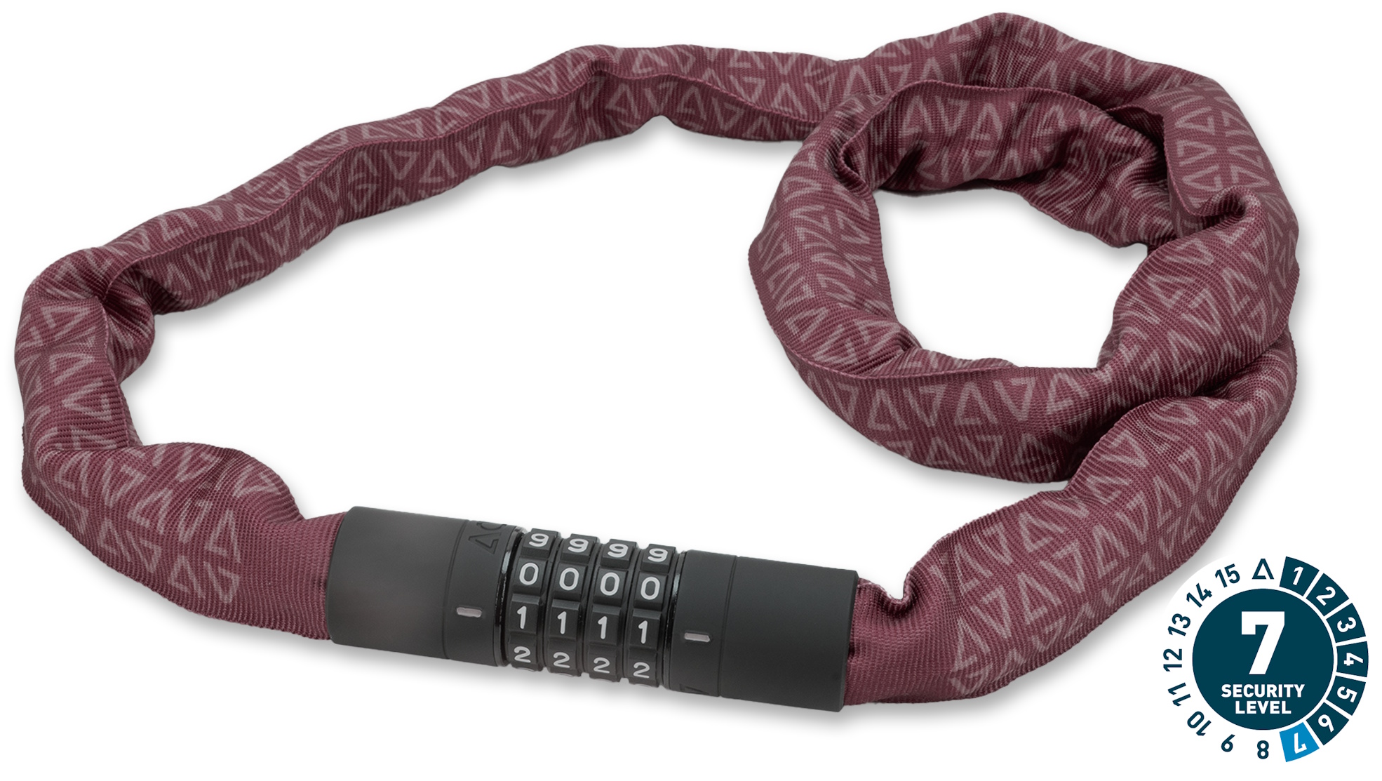 The extra-secure chain lock in our corvid c range is virtually noiseless yet incredibly sturdy with a tear-resistant, hard-wearing textile sleeve. A rubberised surface prevents corrosion and protects your frame against scratches. Grip+ technology on the lock body and combination wheels ensures maximum grip. Personalisable combination.