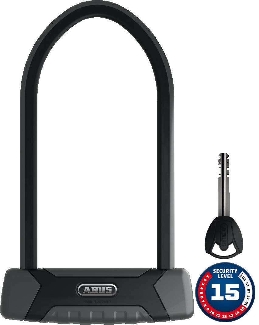 Labai patikimas ABUS saugumas: GRANIT XPlus 540 U tipo spyna patikimai apsaugo jūsų dviratį nuo vagystės.
