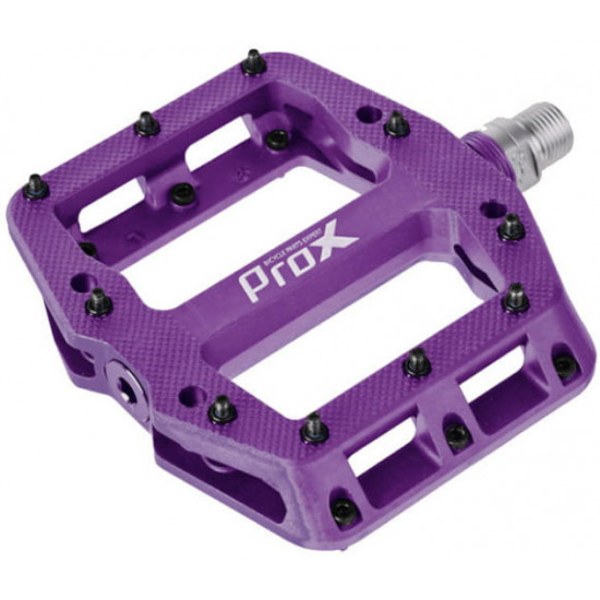 Aprašymas - Pedalai ProX Base Pro 26 plastic Pins axle Cr-Mo purple