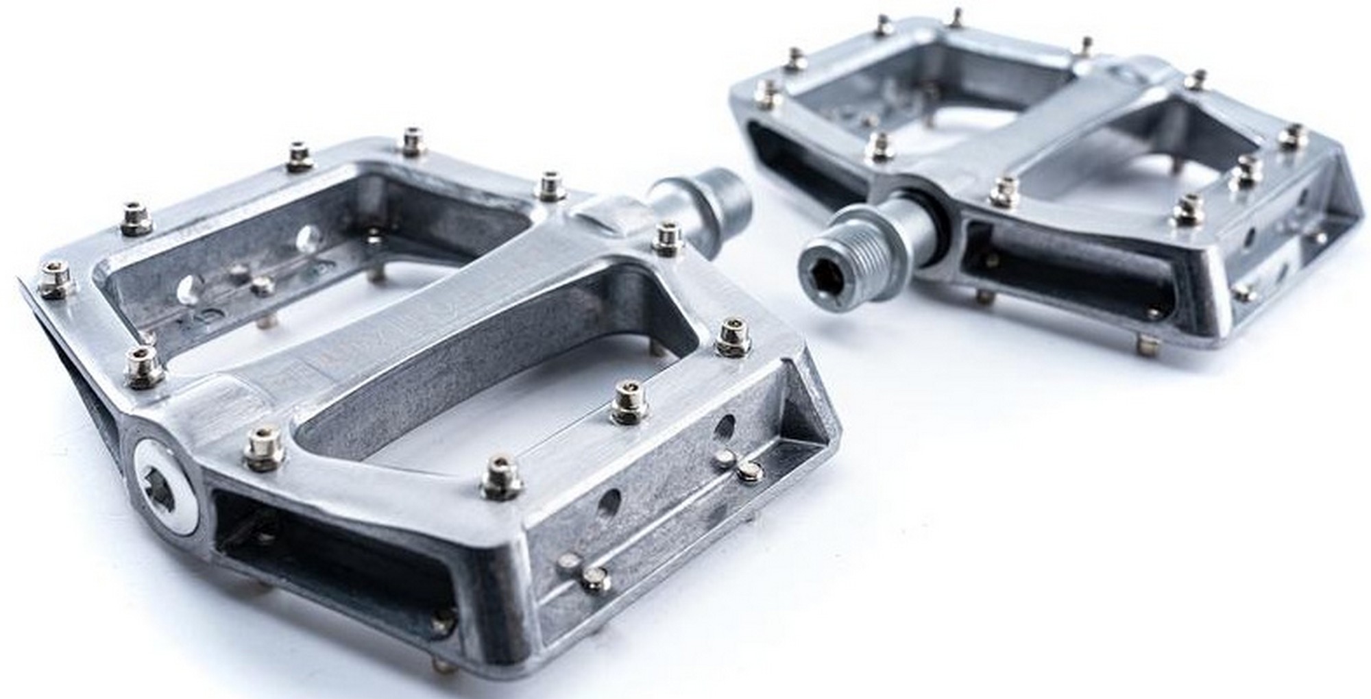 Šie lengvi aliumininiai plokšti pedalai montuojami su Cro-Mo ašimi. Pedalai montuojami su aukštos kokybės guoliais. Neslystantys kaiščiai yra keičiami ir užtikrina geriausią sukibimą su dviračiu.