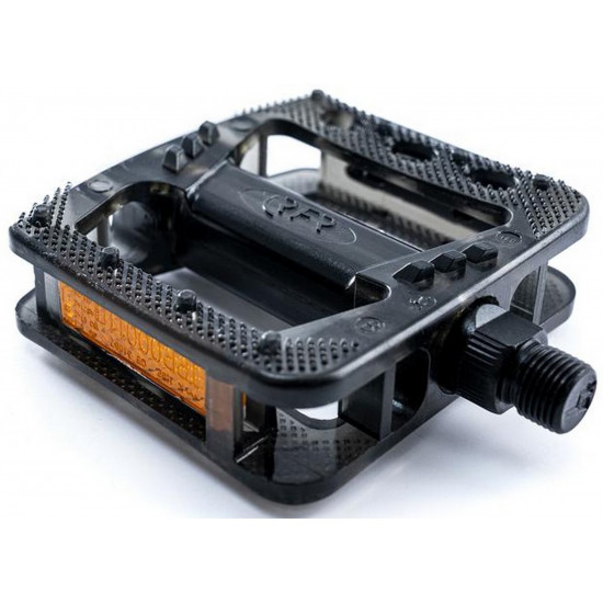 The light junior pedal is made of sturdy polycarbonate and offers best grip via non-slip profile. Includes reflectors