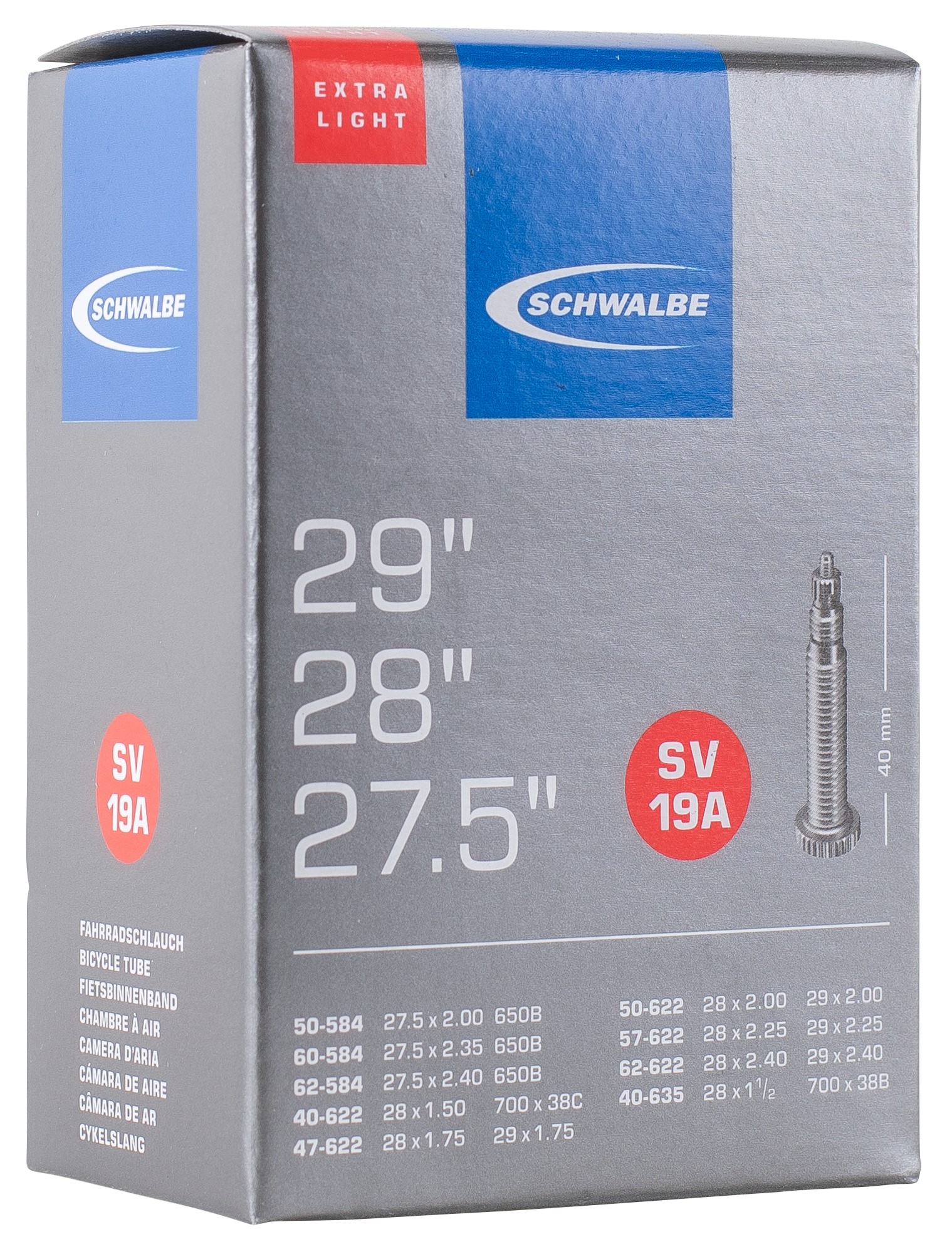 - Kamera 28"/29"/27.5 Schwalbe SV19A ExtraLight (50/62-584 - 40/62-622)