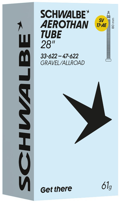 Schwalbe Aerothan Tube with Aluminium Valve Stem – light, stable and sustainable. Schwalbe Aerothan Tube with a robust aluminium valve stem for greater stability and top performance. The tube combines low weight with high puncture protection and actively contributes to the circular economy.