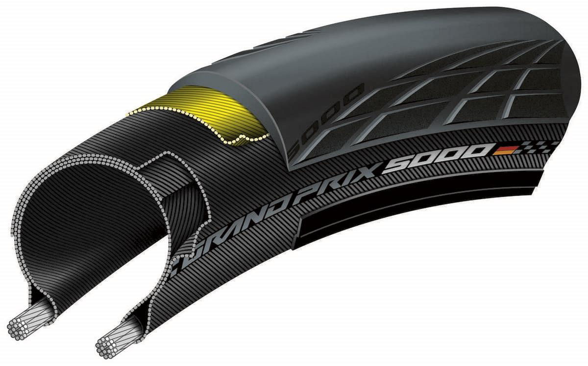 The best allrounder in the field, brought to a whole new performance level. Ride faster, more comfortable, and with increased puncture protection. Made to make you better.Grand Prix 5000 vs. Grand Prix 4000 S II: +12 % better rolling resistance+20 % puncture protection-10 g lighter [25-622]Improved comfortBlackChili Compound - Vectran Breaker - LazerGrip - ACT - 3/330 TPITire size (ETRTO): 25-622 Tire size (in inches or French): 700 x 25CColor/sidewall: foldableWeight (g): 215Recommended tire pressure (in PSI): 95-120Lazer Grip - To make you one with the road. The lazered micro profile structure expands over the tires shoulder and provides out-standing cornering.Active Comfort Technology - The revolutionary approach in cycling. Embedded in the tire construction the Active Comfort Technology absorbs vibrations and smoothens your ride.VectranBreaker - PUNCTURE PROTECTION AT ITS BEST. Vectran is spun from liquid crystal-polymer. This way a thermoplastic, multiplethread yarn is created. As a comparison: This partially crystalline fabric is more cut resistant than aramide and its tensile strength is five times higher than that of steel. A Vectran Breaker is lighter, more flexible and effective against cuts than a comparable nylon breaker. Without effecting rolling resistance.