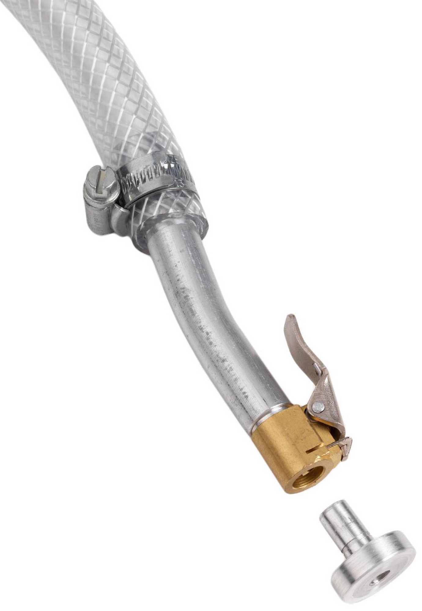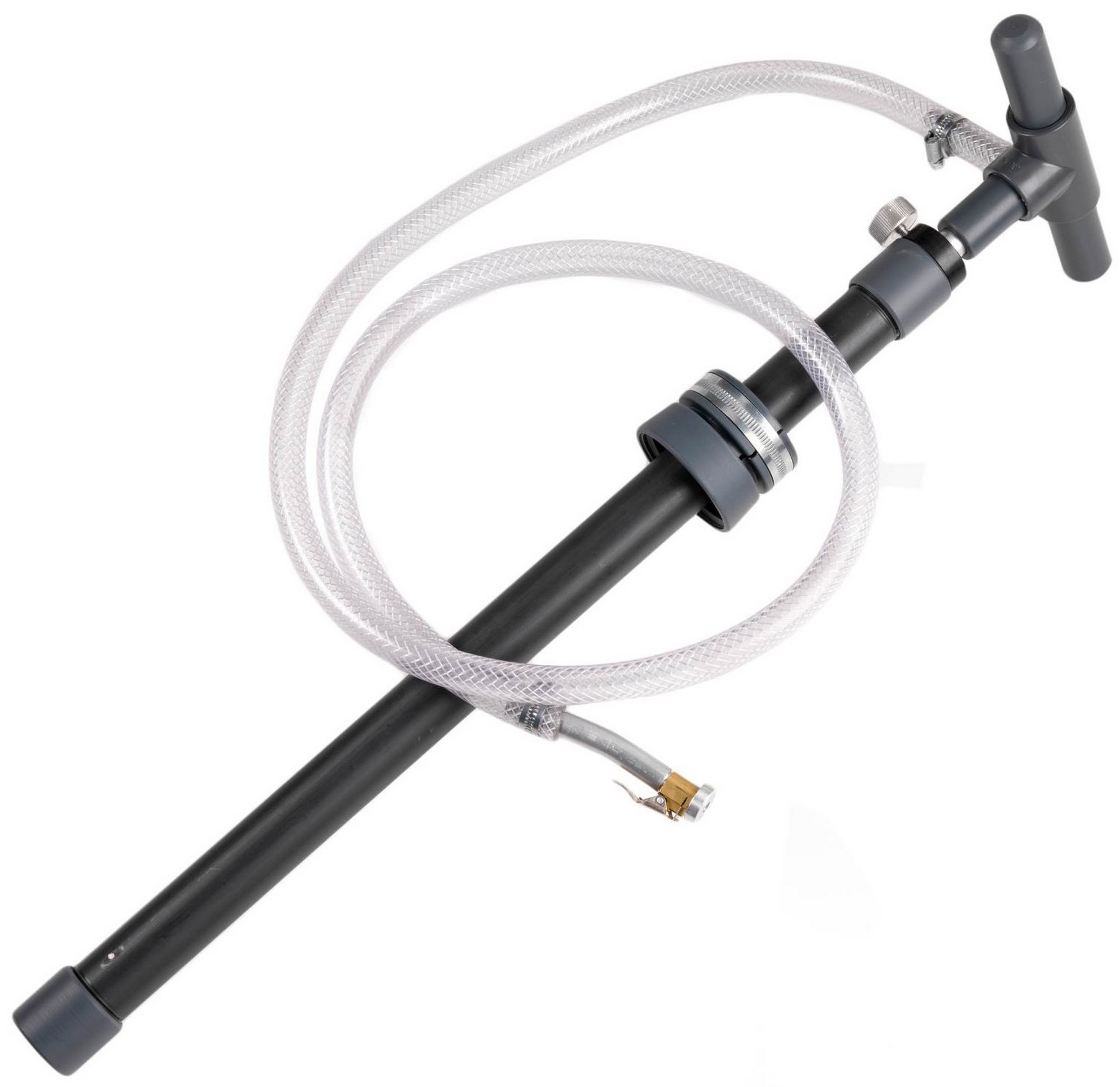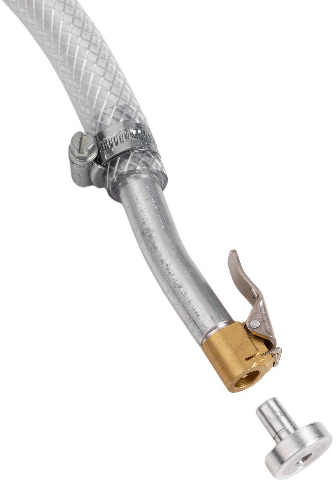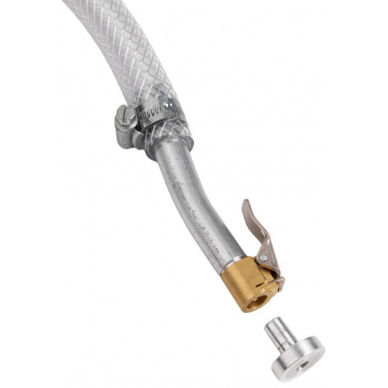 Užsukite OKO pompą ant talpos. Išsukite ventilio šerdį ir uždėkite šlangutę ant ventilio.