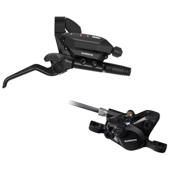 Hydraulic Shimano disc brake set consisting of the ST-EF515 shift/brake lever for safe handling and the BR-MT410 brake caliper for constant braking power. Smooth and simple maintenance is ensured by the tried and tested One Way Bleeding system and the Easy Hose Joint System, which makes brake hose replacement considerably easier.