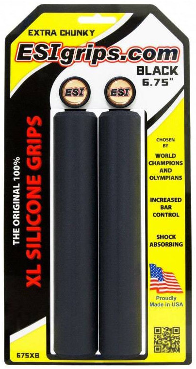 The thickest ESI grips available! ESI Extra Chunky XL grips are recommended for riders prefering wider handlebars as well as shock absorbing characteristics. The grips are made of silicone and ensure a sovereign handlebar control. With 171 mm, the Extra Chunky XL are over 30% longer than standard ESI grips. Made in the USA.
