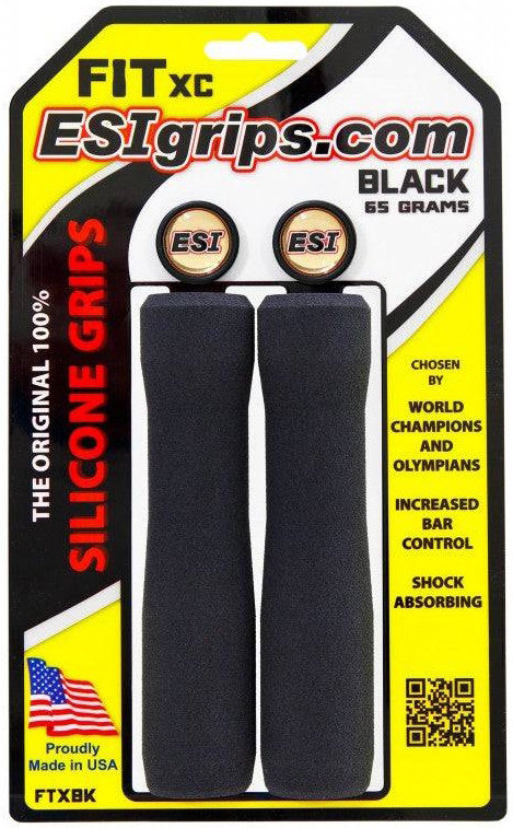 ESI's Fit XC grips are designed for a completely natural hand position on your handlebar. The design balances the pressure that your hands exert onto the handlebars, increasing bar control dramatically. Fit XC grips weigh 65 grams per pair. The grips are made of silicone. Made in the USA.