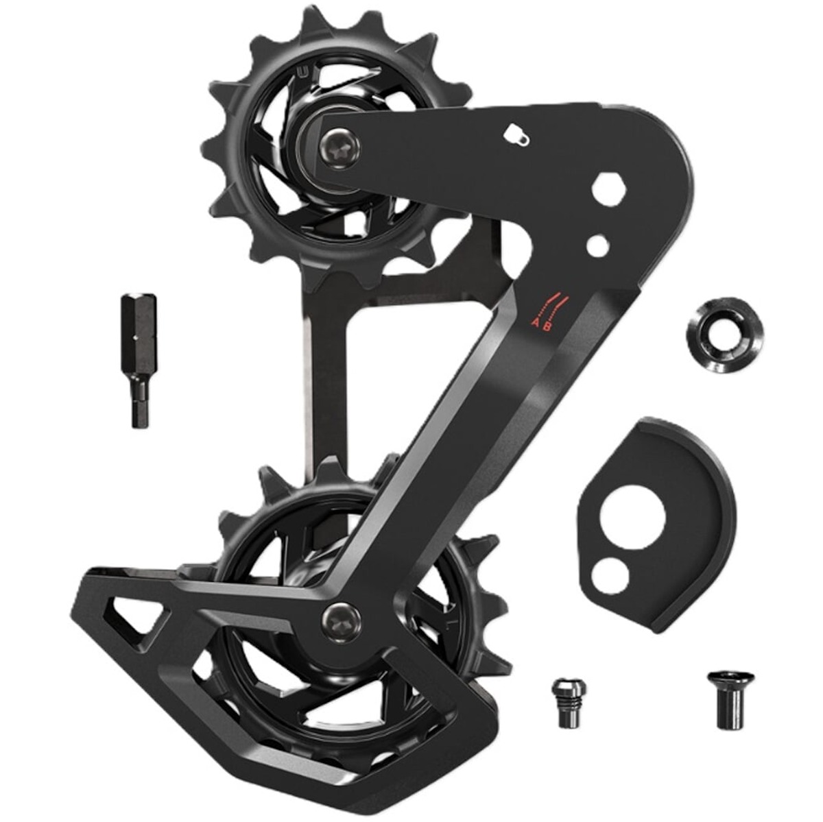 Aprašymas - Galinio pavarų perjungėjo ratukų komplektas SRAM Eagle AXS T-Type alu full cage