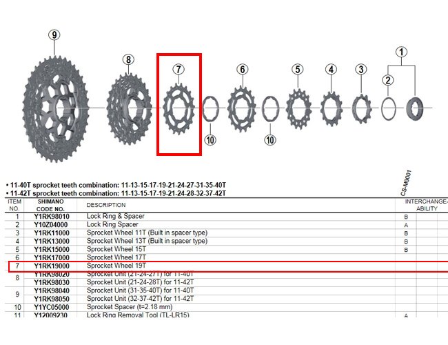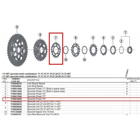 Shimano XT 11 pavarų kasetės CS-M8000 atsarginis žvaigždutės žiedas.