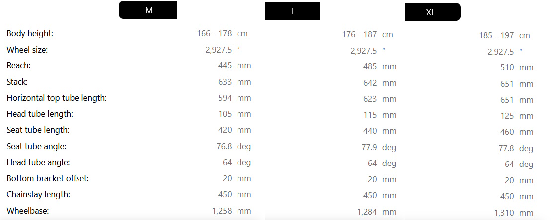Dviračio techninės specifikacijos