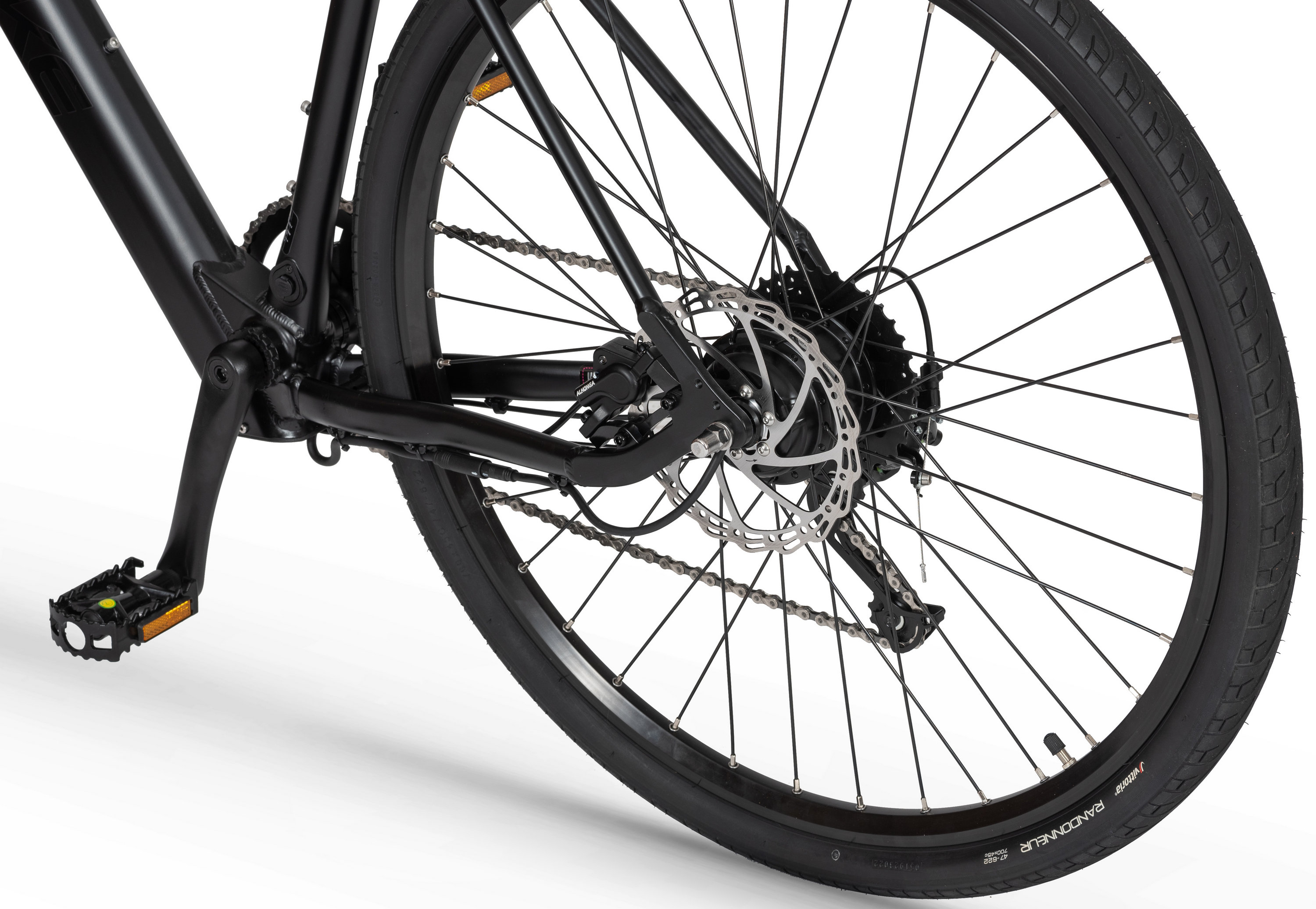 The construction based on the proven aluminum frame and Shimano accessories allow you to meet all-city challenges.Designers took care of the thoughtful selection of components. The 9-speed drive unit is responsible for shifting: Shimano Alivio derailleur controlled by a Shimano Altus shifter - combined with a well-staged cassette, they will allow you to choose the right gear that does not strain your legs. Powerful and precise Alhonga hydraulic disc brakes allow you to feel safe during cycling. Vittoria City Randonneur tires provide good traction and low rolling resistance. All this makes the bike extremely light to ride.