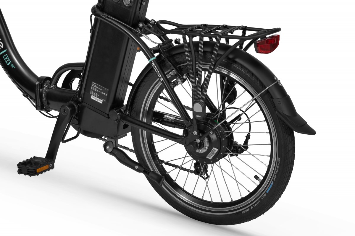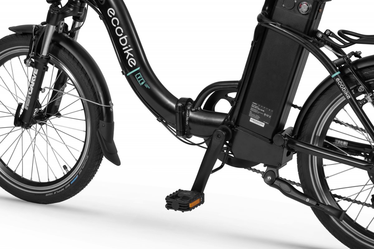 Ecobike is one of the first e-bike manufacturers in Europe. This means company has a many years of experience in electric bikes manufacturing and it can offer an ideal price vs quality ratio. World-class components assembled carefully with love for bicycles in Poland. All these advantages gained trust across the entire European continent.Ecobike Even White is a folding bike with 250W electric motor. To get the best driving stability, we placed the engine in the rear hub. The bike accelerates to 25km/h, and the modern controller makes it run smoothly and does not tug. Batteries produced on Greenway (11.6Ah) and LG (14.5Ah / 17 AH) cells allow you to reach up to 80 km, 125 km or 140 km of maximum range! The batteries are located behind the seat tube vertically, which makes them very easy to remove. There is an LCD display on the bicycle handlebar. It enables configuring the assistance and controlling various data, such as kilometers traveled or the battery level.