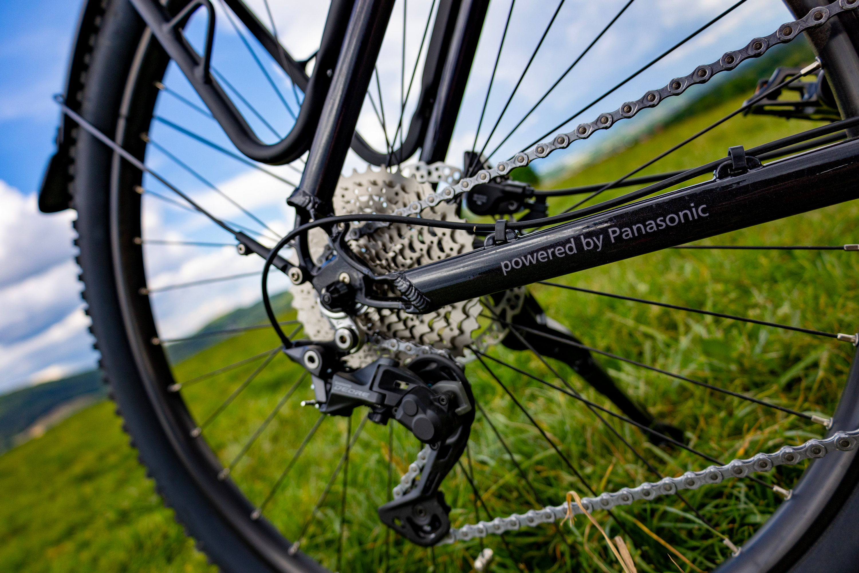 - Įmontuotas rėmo centre (išorėje, tarp galinio rato ir balnelio rėmo vamzdžio)