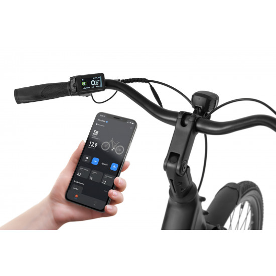 The frame geometry was created with urban routes in mind – comfortable, stable, and safe. The reinforced down tube adds extra stiffness, while the clean cockpit system keeps all cables neatly hidden for a sleek and tidy look.