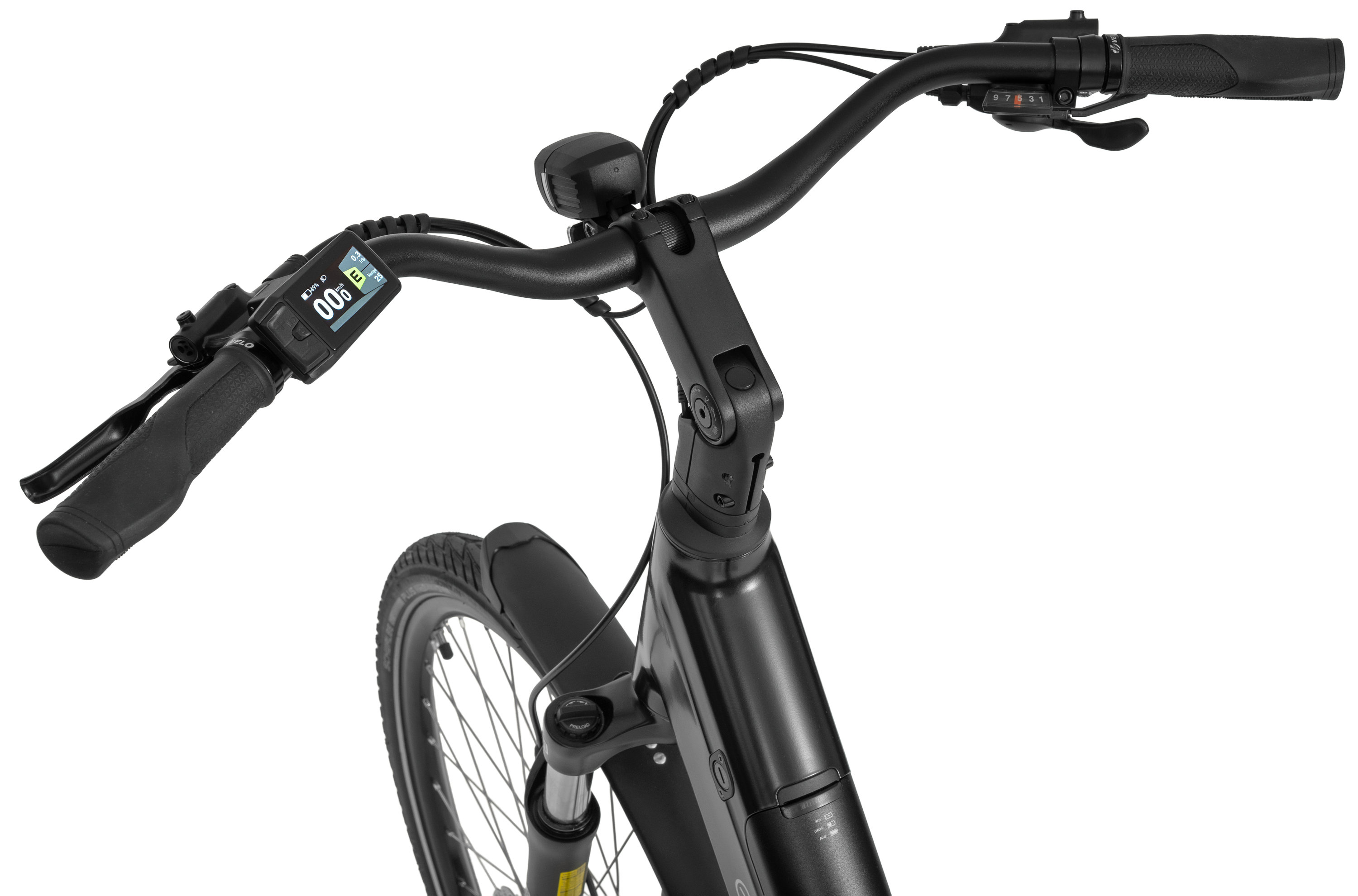 - Maksimalus greitis, kurį gali palaikyti variklis yra 25 km/h. Pasiekus šią ribą variklis išsijungia ir vėl įsijungs tik sumažėjus greičiui. Variklis veikia tik mininat (padeda minti). Dviratis neturi akseleratoriaus renkanėlės. Pagalbos minant lygius ir kitus nustatymus galima pasirinkti ant vairo esančiu valdikliu.
