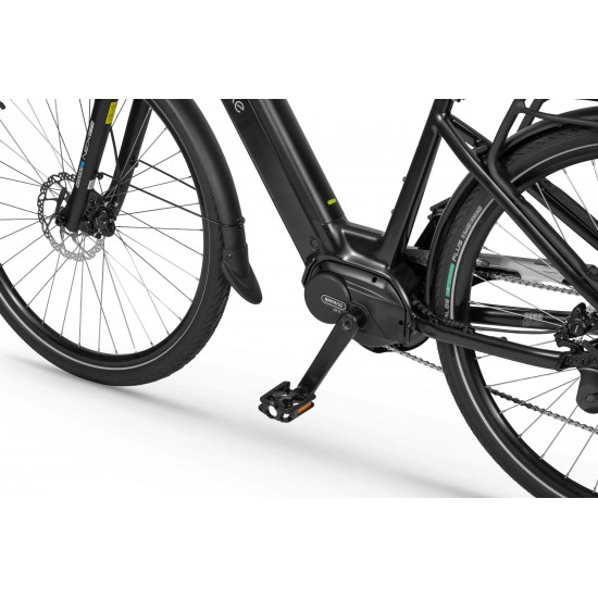 The Ecobike LX 100 is equipped with an intelligent assist system featuring the Bafang M210 motor, which operates quietly and efficiently, delivering power and torque up to 80 Nm. The frame geometry allows for a comfortable riding position, and its universal design appeals to various tastes. The MIK system on the rear rack lets you securely mount panniers.