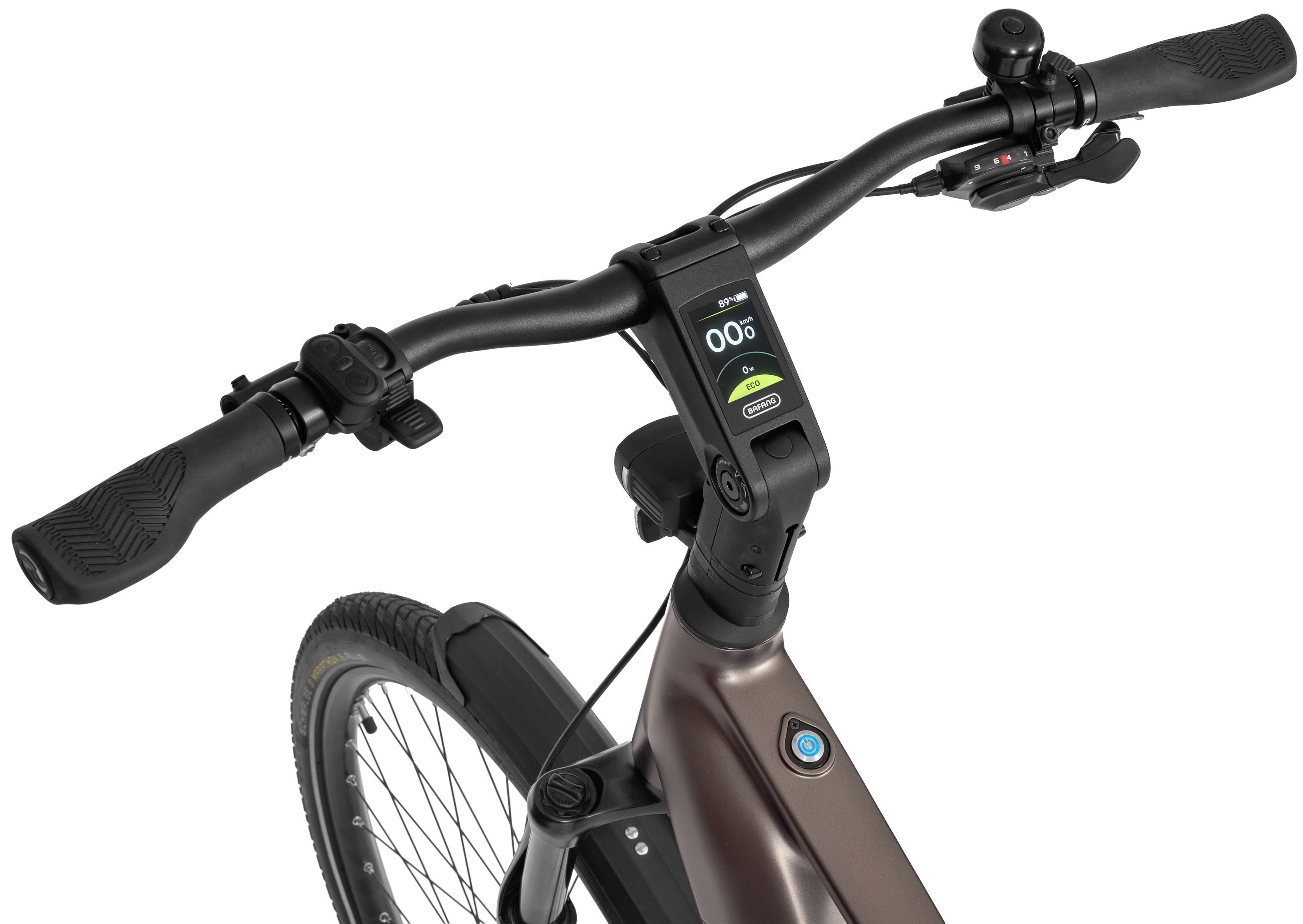 The headset and clean cockpit design keep all cables neatly hidden. The display integrated into the stem gives you full control over assistance settings while preserving the bikes elegant silhouette.