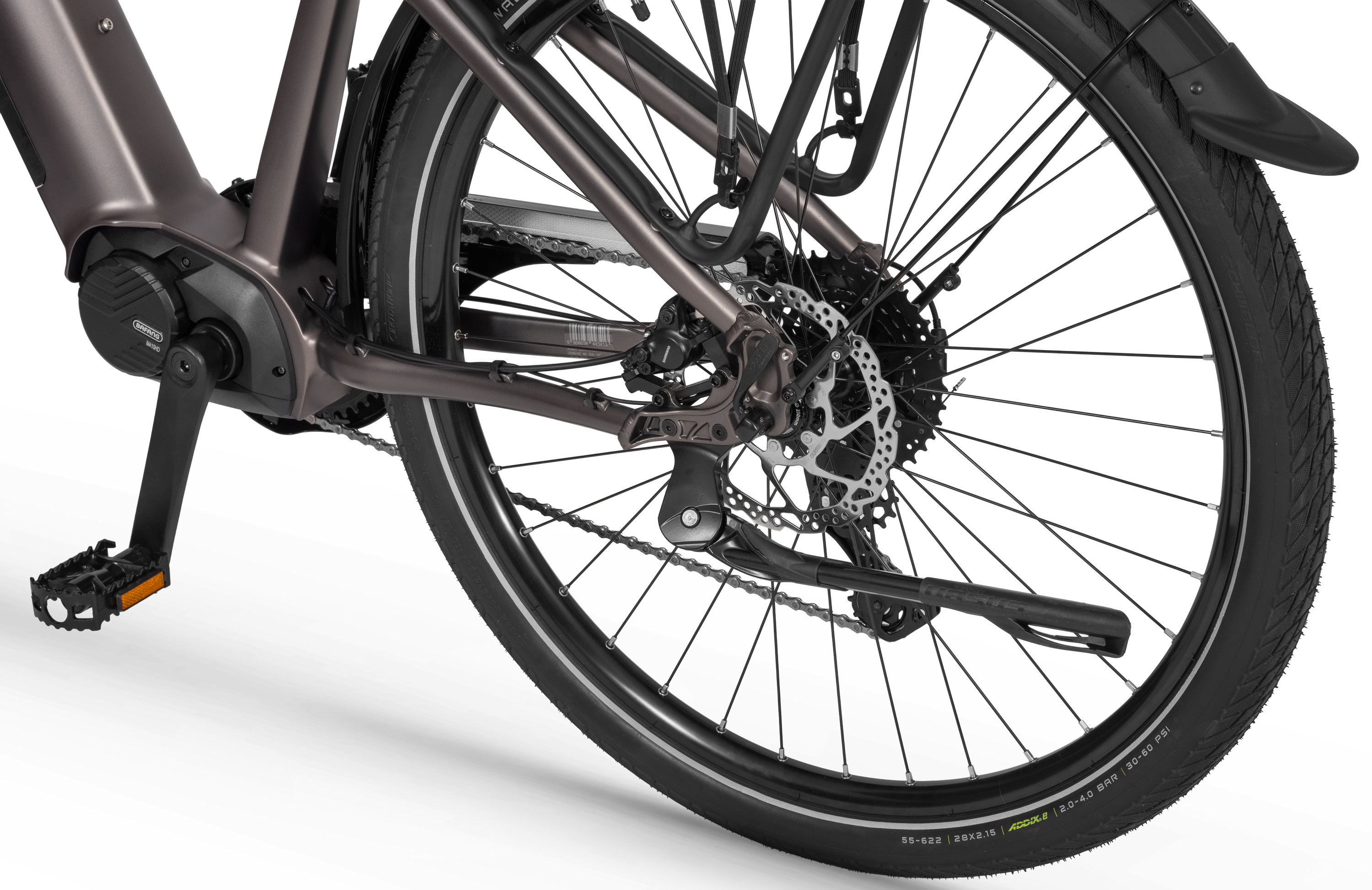At the heart of the MX 300 lies a modern mid-drive motor supported by the complete Bafang system. It delivers smooth and natural assistance, performing equally well in the city and on longer trekking routes.