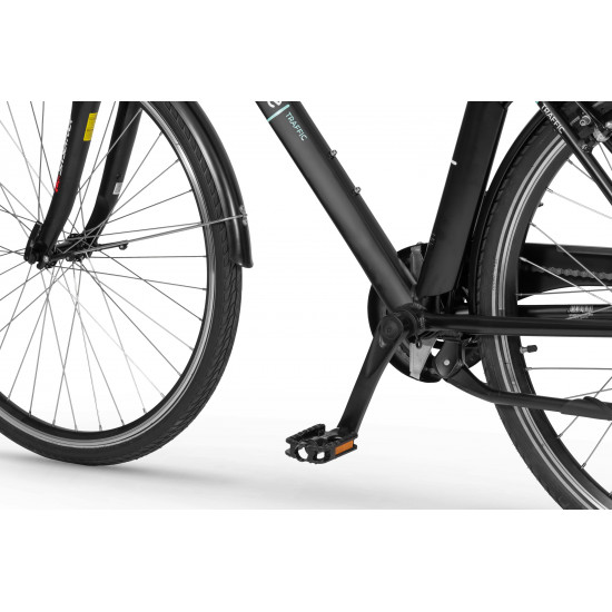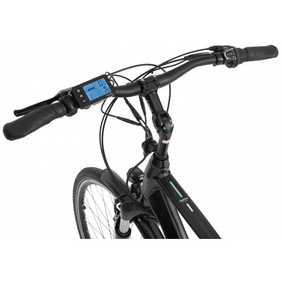 In addition, the bike will meet expectations regarding comfort and safety. Traffic is equipped with complete lighting powered by the main battery, Shimano Altus gears, SunTour CR8V suspension fork, adjustable stem, fenders, and a comfortable Selle Royal saddle.