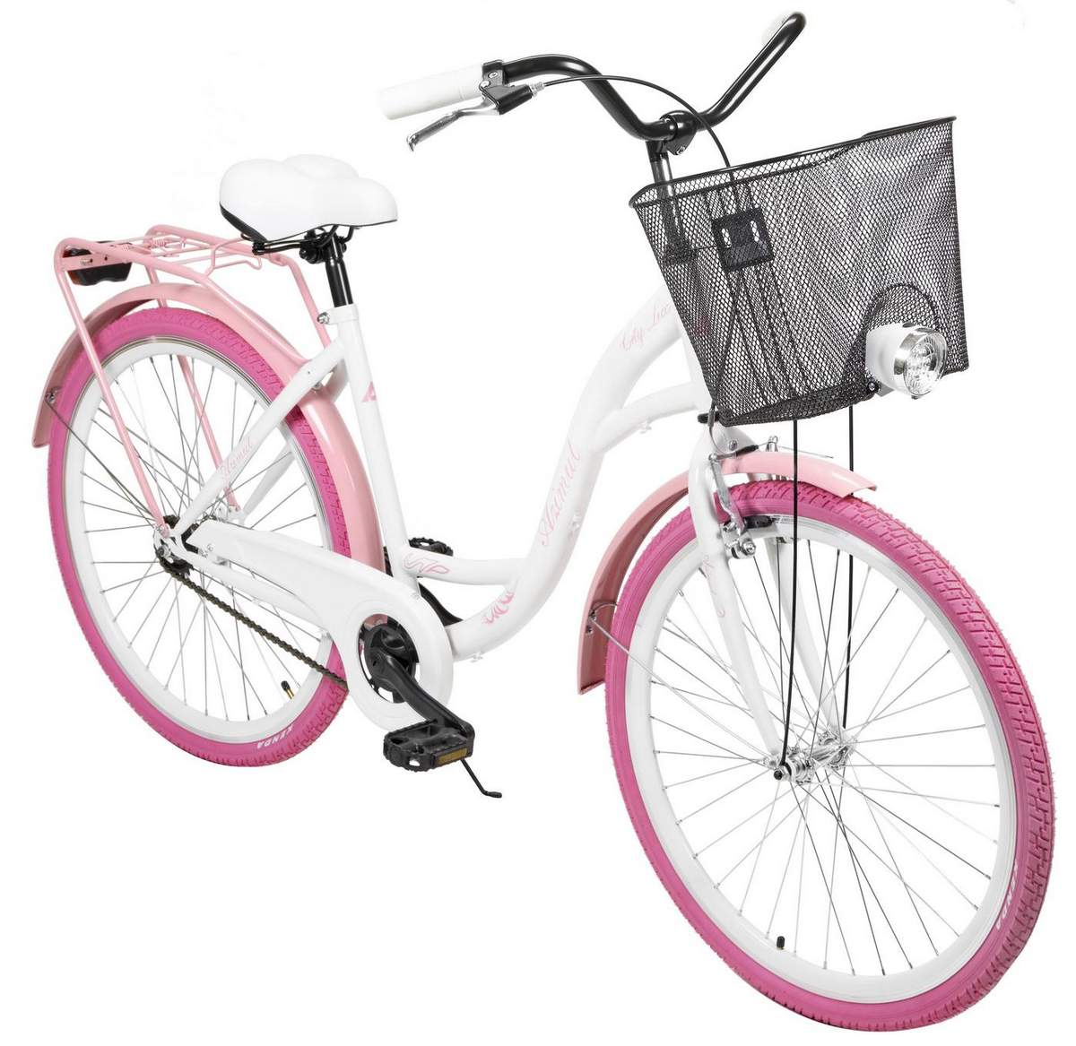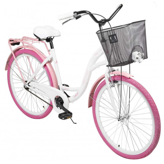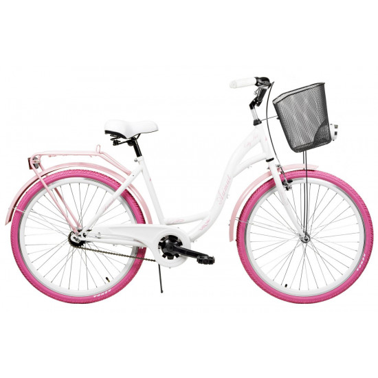 - Dviratis AZIMUT City Lux 26" 2025 su krepšeliu white-pink