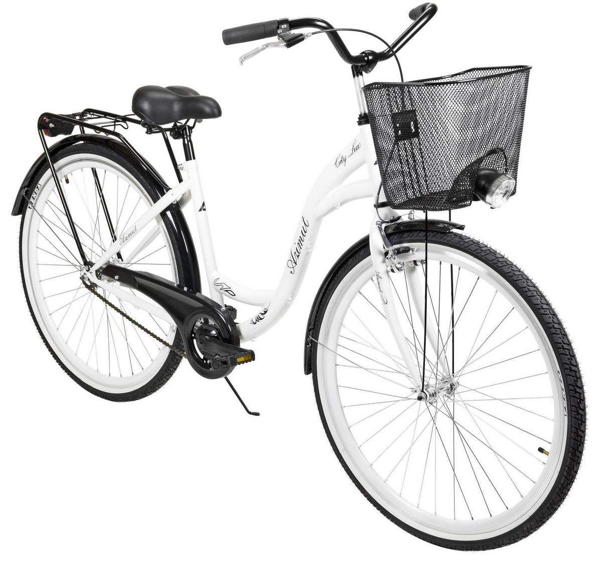 Dviratis AZIMUT City Lux 28" 2025 su krepšeliu white-black