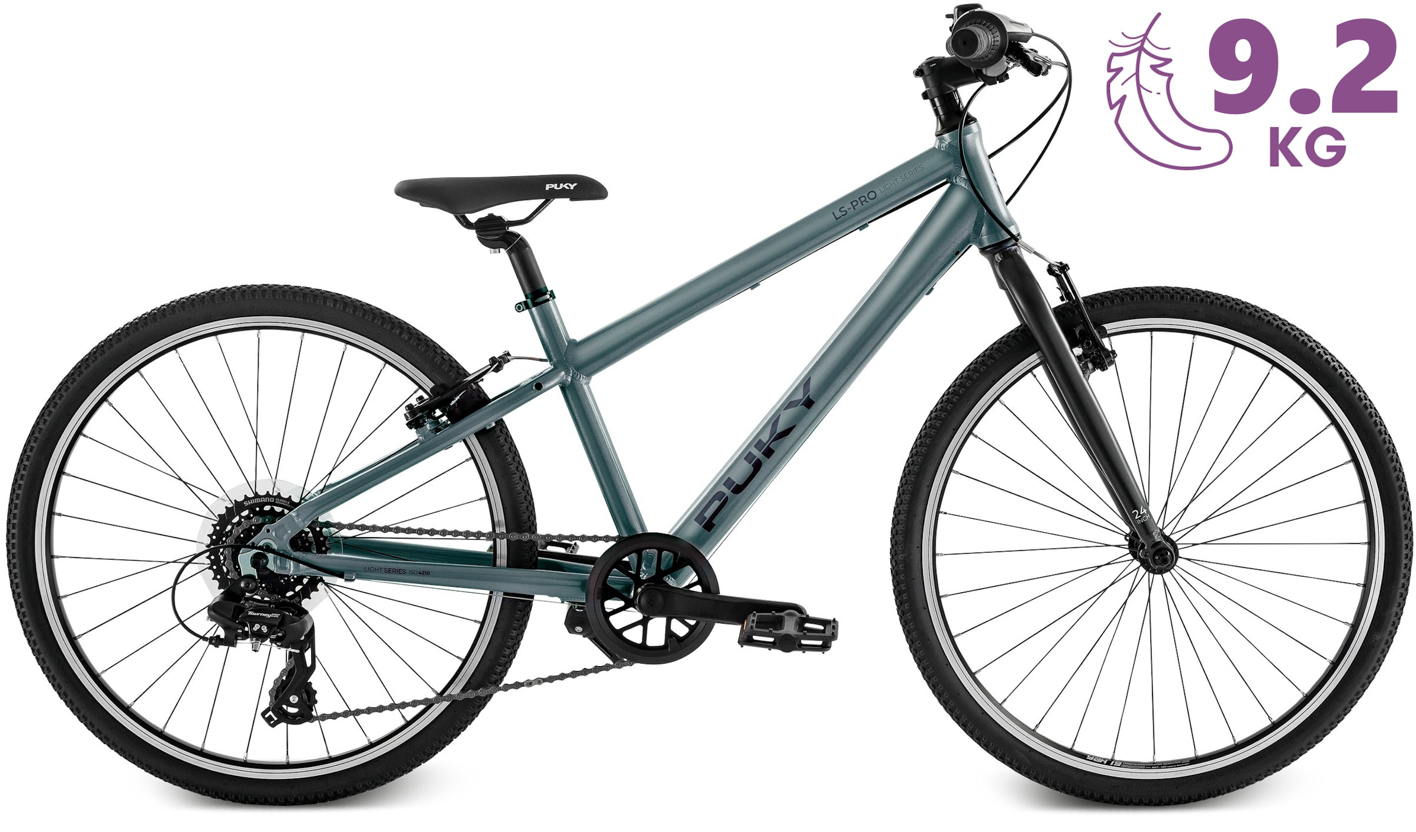 PUKY S-PRO serija išsiskiria ypač mažu svoriu, kuris galimas dėl dviratyje panaudotų aliumininių detalių rėmas, šakė, priekinis žvaigždžių blokas, balnelio laikiklis. Kaip ir visuose PUKY modeliuose nepamiršta ir apie saugumą. Vaikiškai/paaugliškai kojai pritakyti plataus profilio pedalai su sukibimą padidinančiais iškilimais bei atšvaitais, kurie pagerina saugumą tamsesniu paros metu. Efektyvūs ir lengvai valdomi V-BRAKE stabdžiai leis greitai ir saugiai sustabdyti tada, kai to reikia. Neslidžios ir komfortiškos vairo rankenėlės. Patogus minkštas balnelis su besiūle viršutine danga leis mėgautis važiavimu tiek trumpose, tiek ir ilgesnėse distancijose specialius dizainas sumažina trintį ir spaudimą ten, kur to labiausiai reikia. Laikas išmokti jungti paavaras! Modelis turi 8 išorines Shimano pavaras lengvesniam įkalnių įveikimui ir tinkamo greičio palaikymui. Pavaros lengvai pasirenkamos sukant ant vairo esančią pavarų perjungimo rankenėlę.
