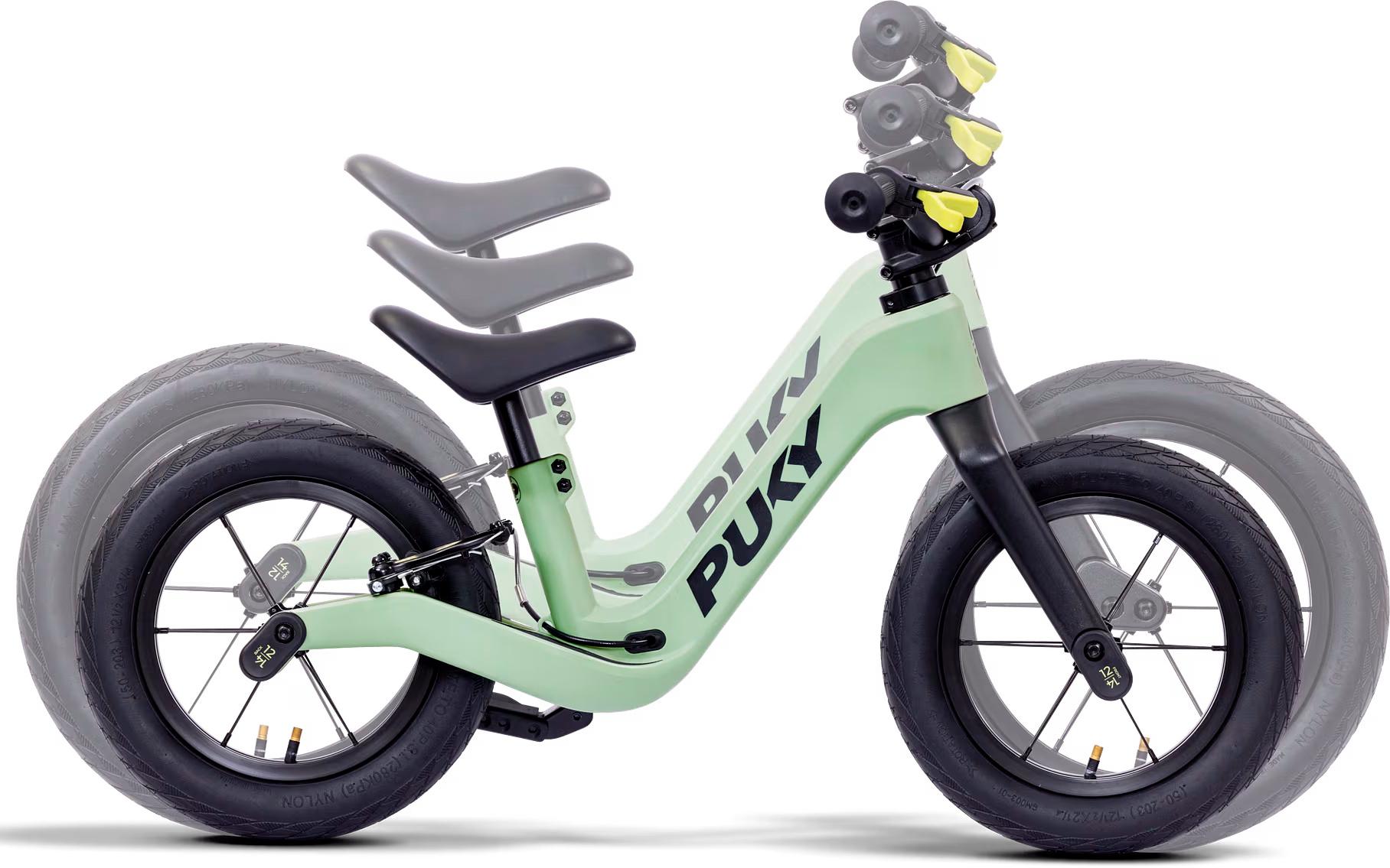 - Tires: Growing balance bike with 12" and 14" wheelset