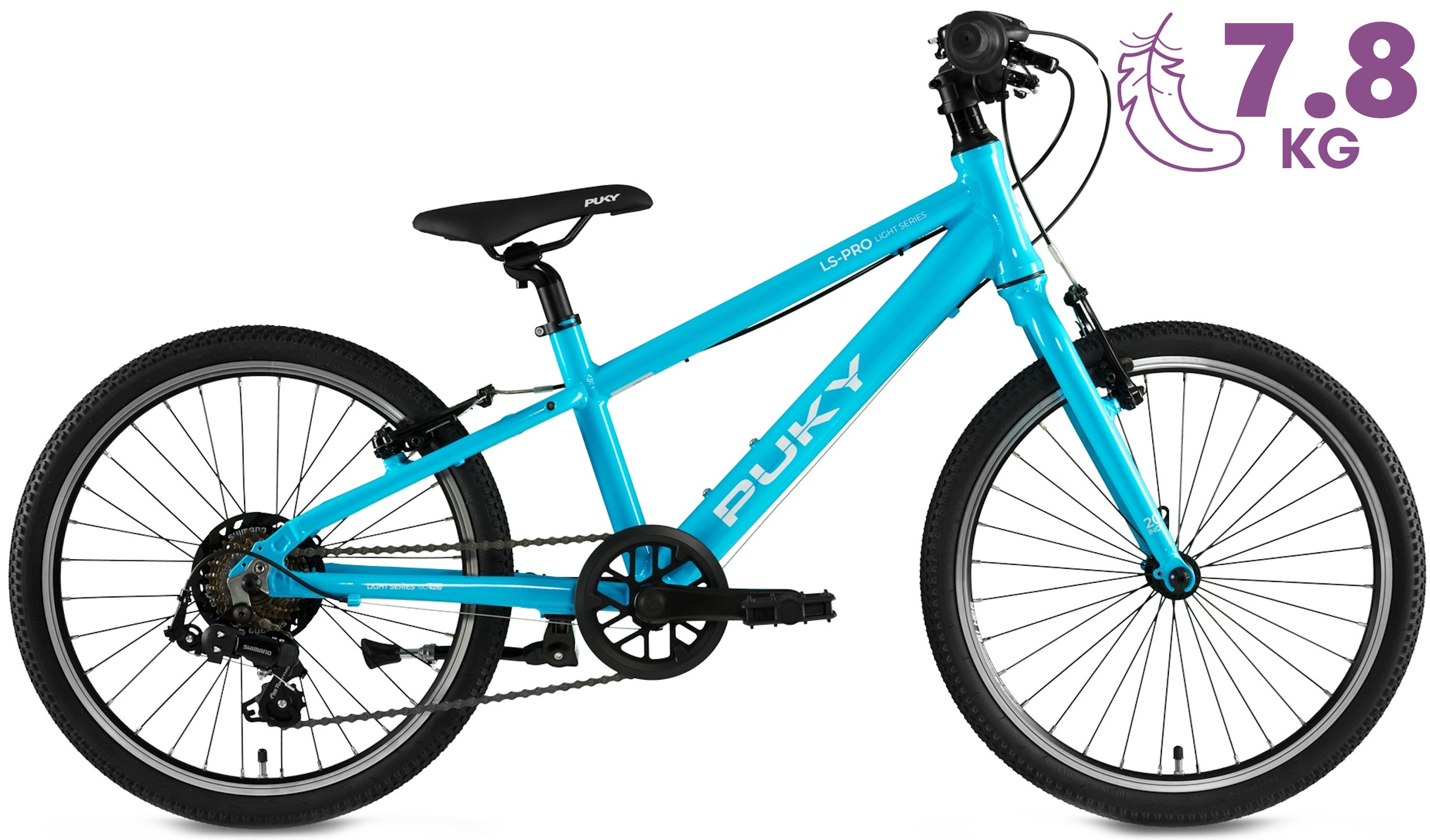 PUKY S-PRO serija išsiskiria ypač mažu svoriu, kuris galimas dėl dviratyje panaudotų aliumininių detalių – rėmas, šakė, priekinis žvaigždžių blokas, balnelio laikiklis. Kaip ir visuose PUKY modeliuose – nepamiršta ir apie saugumą. Specialaus dizaino grandinės apsauga saugo ne tik nuo purvo, bet ir nuo kelnių klešnių ar batraiščių patekimo į žvaigždžių bloką. Vaikiškai kojai pritakyti pedalai su neslidžia danga bei atšvaitais, kurie padidina saugumą tamsesniu paros metu. Efektyvūs ir lengvai valdomi V-BRAKE stabdžiai leis greitai ir saugiai sustabdyti tada, kai to reikia. Neslidžios ir komfortiškos vairo rankenėlės su papildoma apsauga – specialiais vairo galais, kad rankytės nenuslįstų. Patogus minkštas balnelis su besiūle viršutine danga leis mėgautis važiavimu tiek trumpose, tiek ir ilgesnėse distancijose – specialius dizainas sumažina trintį ir spaudimą ten, kur to labiausiai reikia.