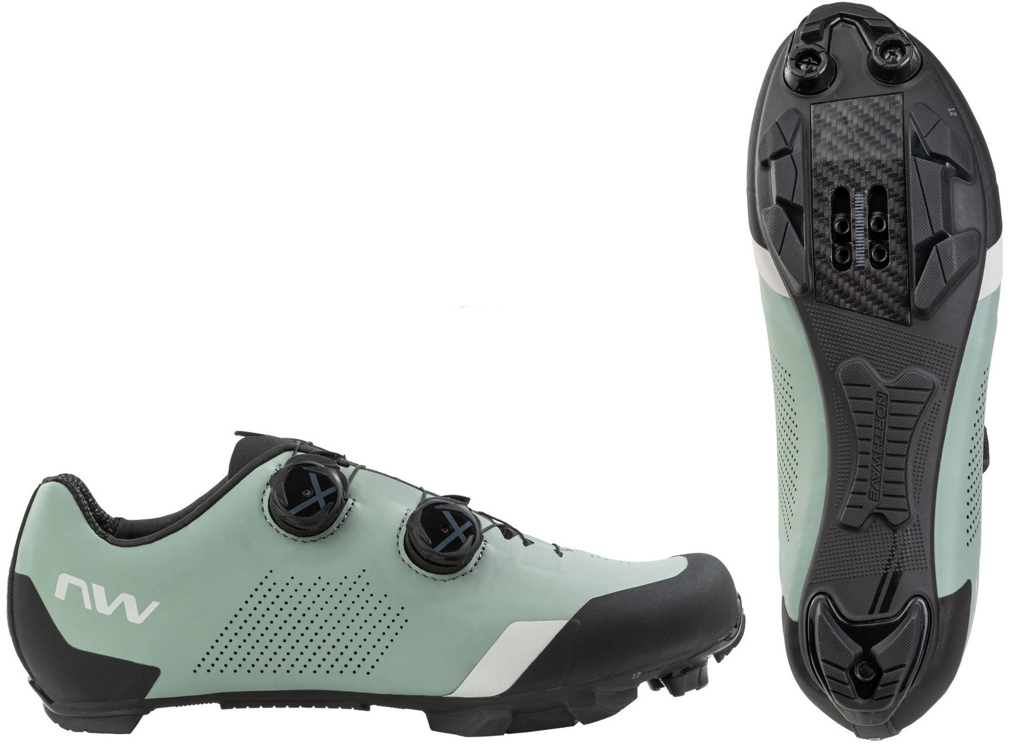 CARBON XC 12 - Extremely stiff when pedaling, thanks to the full carbon insert in the pedal area, but also ideal for long distances, thanks to the additional flex in the midfoot area. Developed with TPU inserts at strategic points to ensure high traction and excellent abrasion resistance.