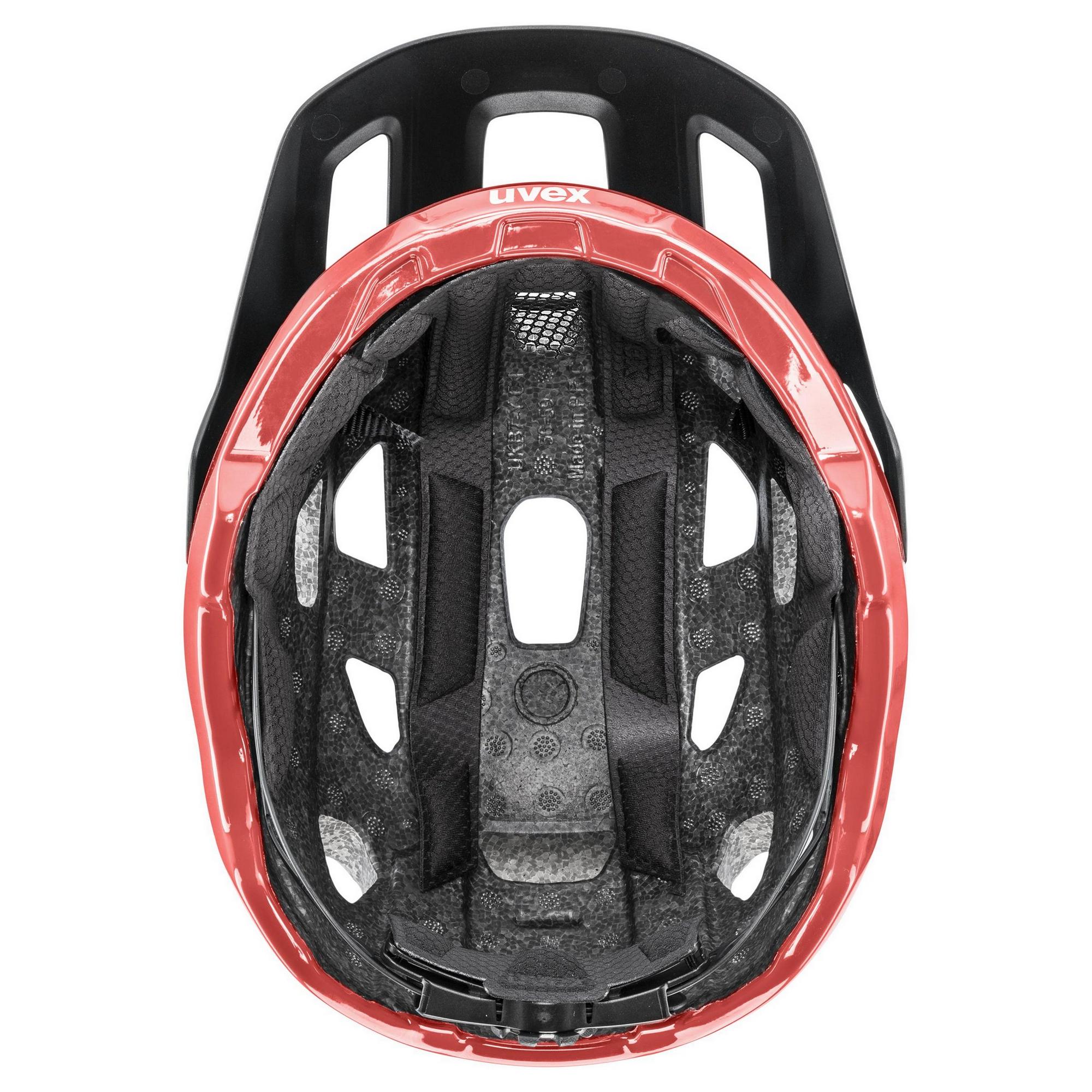 Inmould technologija - apsauginė medžiaga EPS į polikarbonato apvalkalą yra įpurškiama tiesiai į putas. Dėl lengvos šalmo konstrukcijos, pasižyminčios didžiausiu atsparumu smūgiams. Puikus EPS vidinio sluoksnio ir polikarbonato išorinio sluoksnio sujungimas.IAS 2.0 - uvex IAS dydžio reguliavimo sistema leidžia milimetro tikslumu individualiai reguliuoti šalmą pagal galvos apimtį viena ranka.