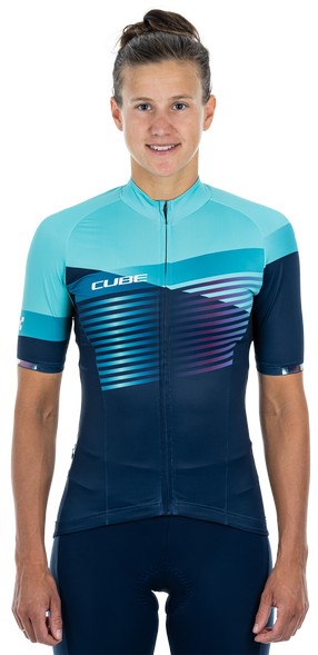 Aprašymas - Dviratininko marškinėliai Cube Teamline WS S/S blue'n'mint