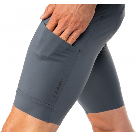 The CUBE GRAVEL CARGO Bib Shorts are made from breathable stretch fabric that ensures a great fit and full freedom of movement. Anti-odour treatment actively combats unpleasant odours. Featuring the premium CUBE Team Pad, these bib shorts are designed to deliver maximum comfort on long-distance rides. Side pockets offer practical storage for tools, snacks or other essentials. Ideal for gravel riders looking for a functional and comfortable solution.