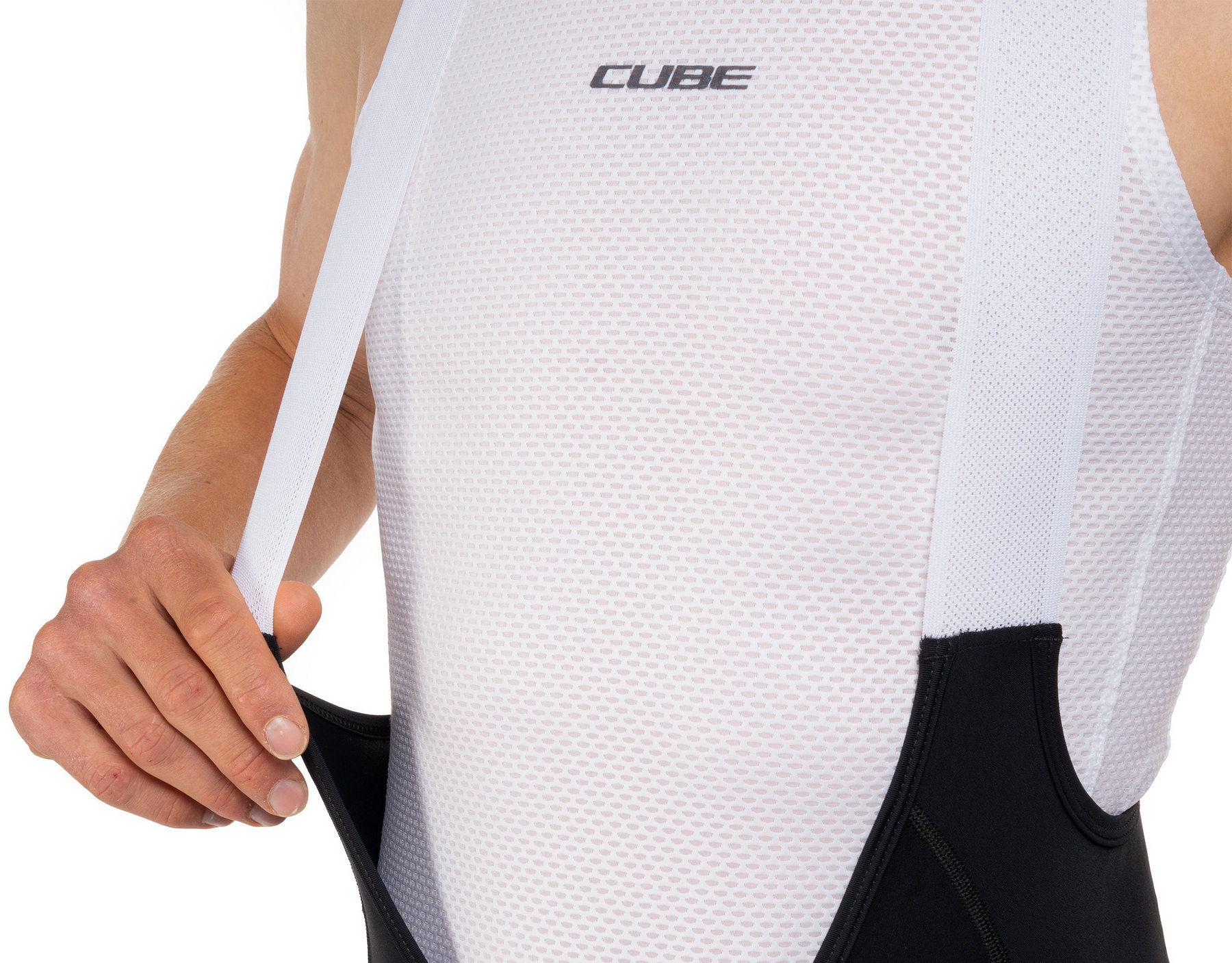 The CUBE Road/XC Bib Shorts in our Teamline design feature an advanced construction for premium comfort and performance. Made from high-quality, abrasion-resistant, quick-drying stretch fabric with Lycra, they offer a perfect fit and exceptional freedom of movement. Streamlined seams minimise potential friction points and enhance comfort on long rides. The newly developed ergonomic chamois pad delivers targeted cushioning and optimal pressure distribution for lasting support during multi-hour efforts. Ultra-soft, anatomically designed straps provide a secure fit without pressure points, while elastic silicone leg grippers keep the shorts firmly in place. Strategically positioned reflective elements enhance visibility in low-light conditions. These bib shorts combine advanced fabrics with sophisticated design – perfect for discerning riders.
