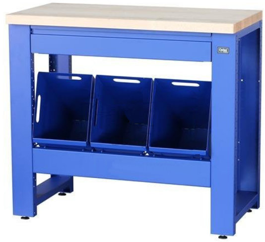 Darbo stalas servisui Cyclus Tools System 500 89 x 100 x 50 cm with trash can 3 x 25 L, pull-out 3 containers, drawer blue (7208